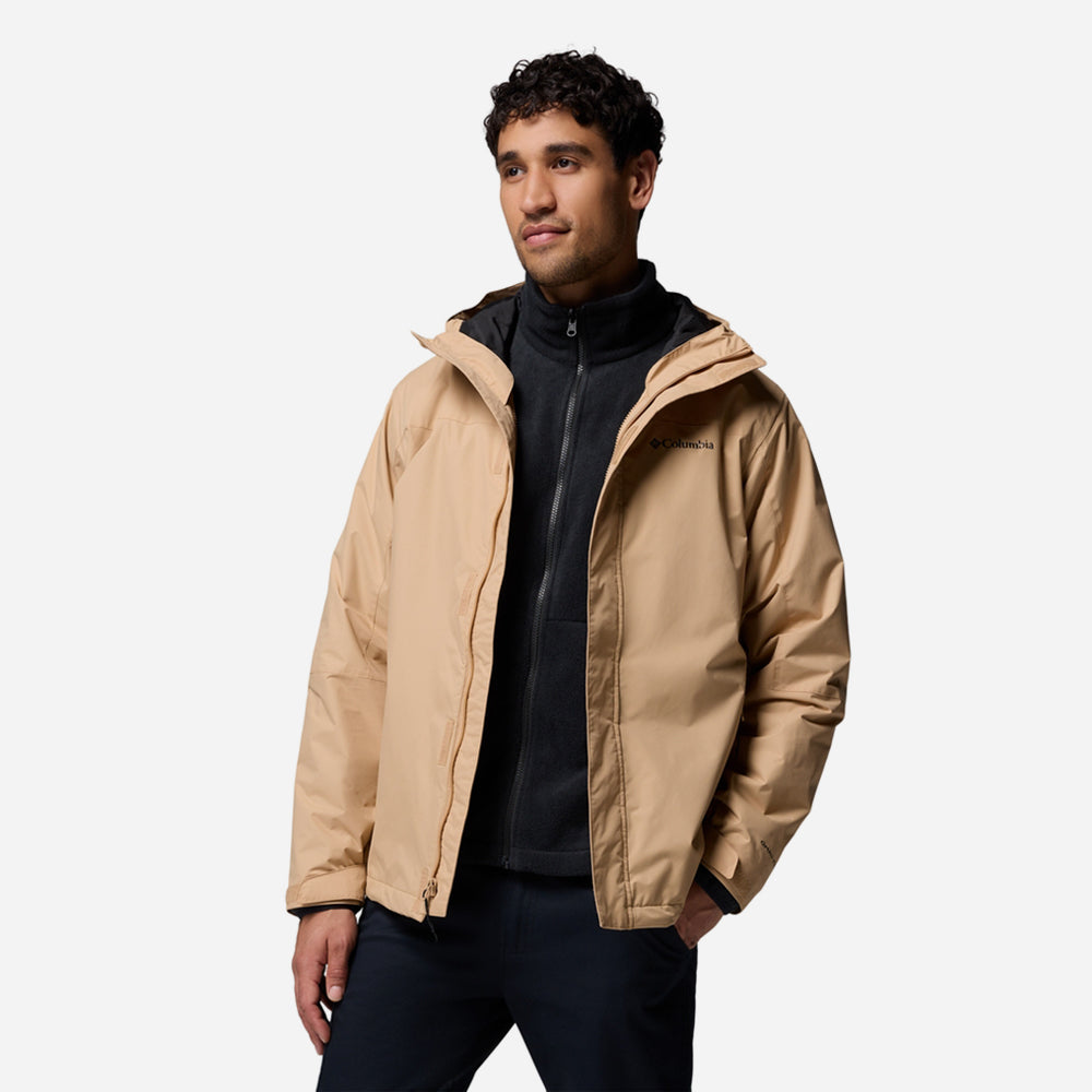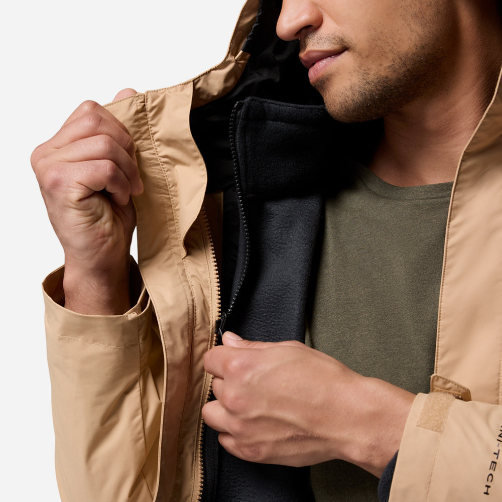 Reliable and versatile protection. This waterproof-breathable 3-in-1 jacket allows you to wear just the fleece liner, the tough outer shell, or zip them together when the weather calls for it.