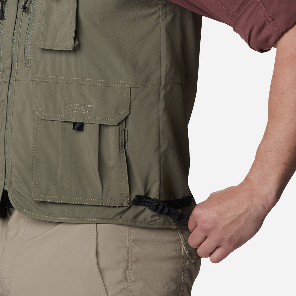 A utility vest with sweat wicking technology and plenty of handy pockets.