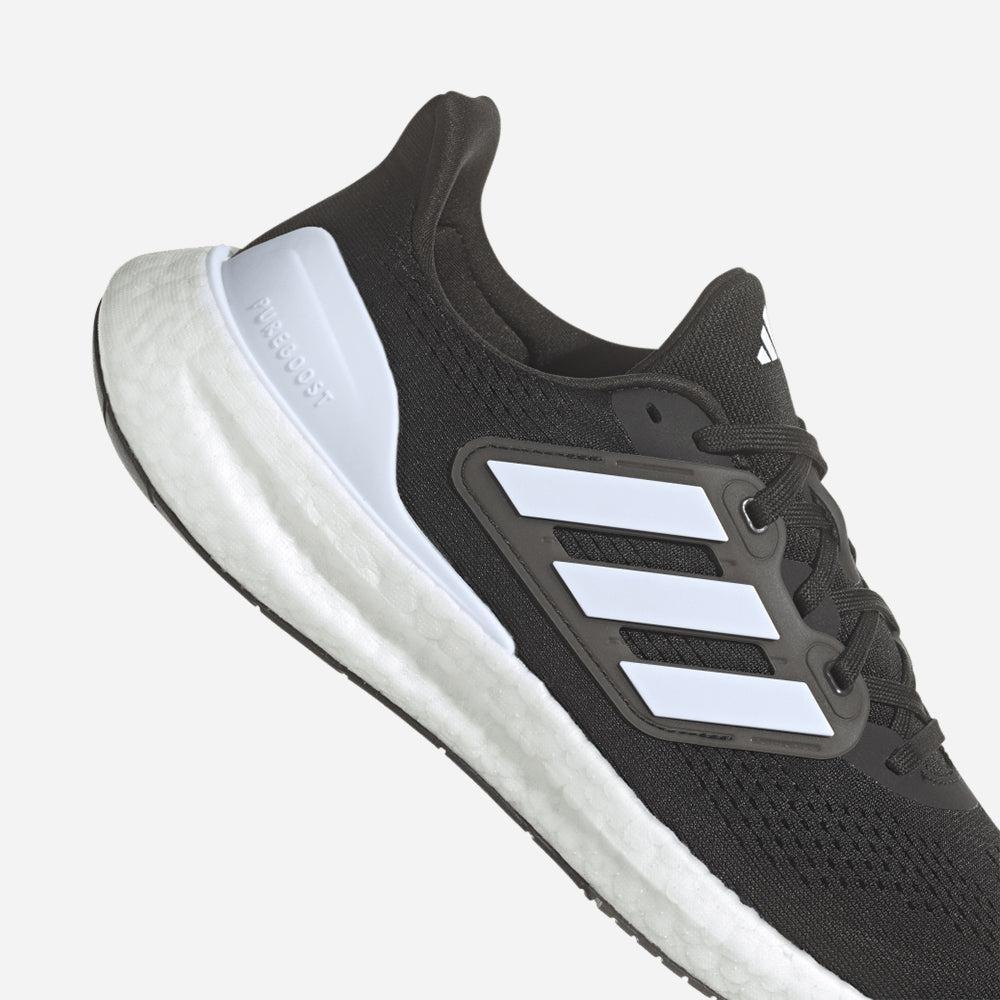 Logging daily miles is a delight in the adidas Pureboost 23 running shoes. Full-length BOOST provides the ultimate energy return, and strategic cutouts along the rubber outsole let the foam compress and expand while you run. The lightweight engineered mesh upper is breathable where your foot heats up and supportive where it needs to be, resulting in a running experience that is comfortable toe to heel.