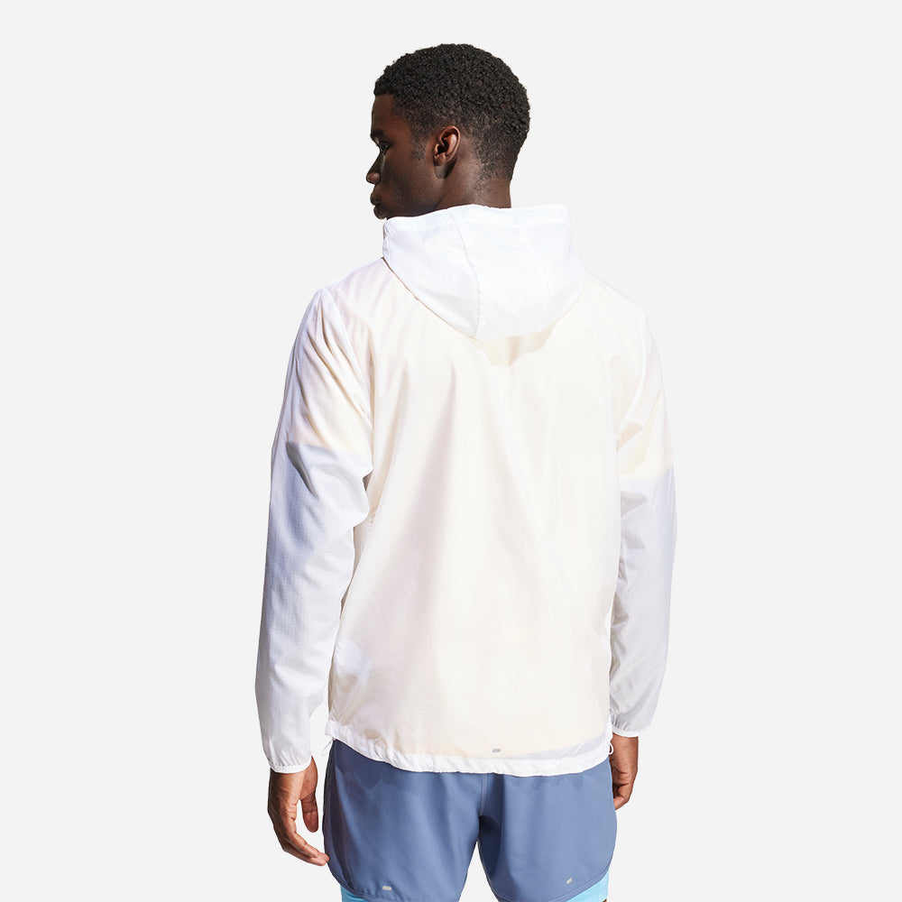 Push your run farther with this wind-resistant jacket from adidas. Lightweight woven fabric and WIND.RDY tech block out chill breezes so you can focus on keeping the pace. If the weather clears, the jacket packs down into its own chest pocket for efficient storage.